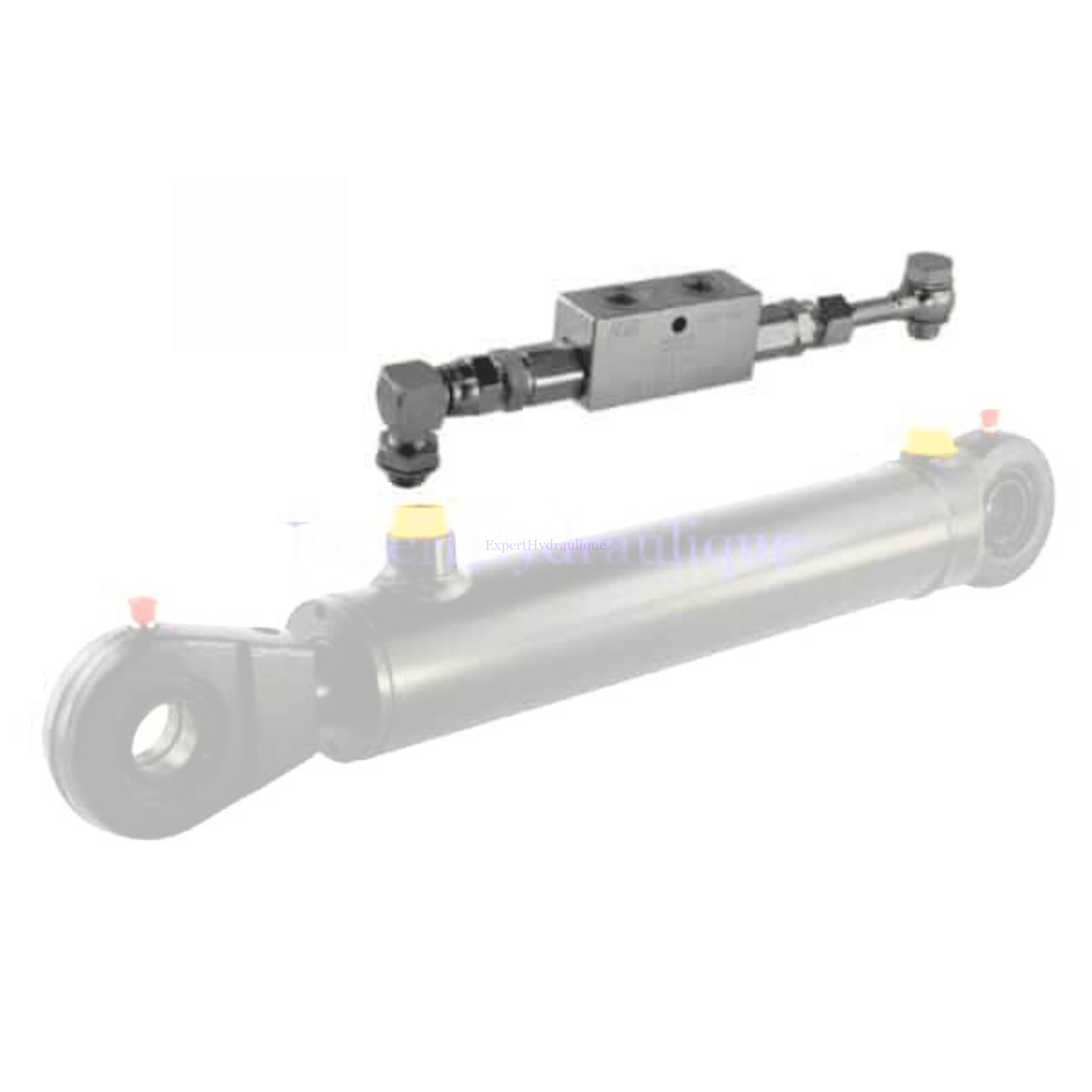 - Le clapet anti-retour piloté empêche tout mouvement involontaire du vérin en cas de coupure de pression ou de flexible.