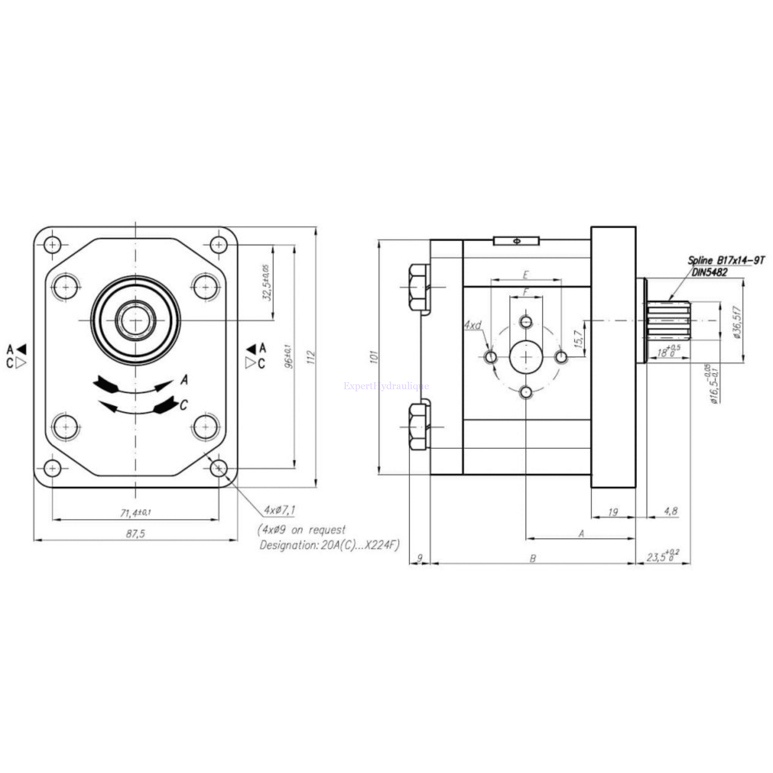 Caractéristiques d’une pompe hydraulique fixation 4 trous arbre cannelé 9 dents Groupe 2